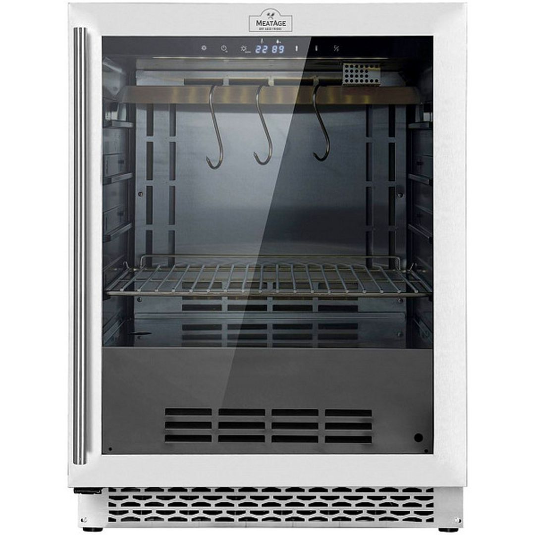 Описание Шкаф для вызревания мяса Meatage VI46 предназначен для сухого созревания (выдержки) говядины, свинины, телятины, а так же ветчины и салями. Идеально подойдет для ресторанов, мясных лавок, небольших мясных производств и для домашнего использования. Все детали Meatage VI46 изготовлены из нержавеющей стали, а дверца из ударопрочного закаленного стекла, благодаря чему можно наблюдать за процессом. Уникальная система вентиляции позволяет поддерживать оптимальный микроклимат, который не допускает размножения бактерий и микробов, а ферменты, присутствующие в мясе, активизируют химические процессы, которые разрушают мышечные волокна, делая мясо более нежным и позволяют сформировать вкусовой «букет» и аромат. При этом мясо созревает с минимальными потерями в весе, лишь 8% за 4 недели. Особенности Точная регулировка влажности Точная регулировка температуры Низкие массовые потери за счет циркуляции влаги внутри шкафа: — при выдержке в говядина теряет около 8-10% в течение 4 недель — свинина прибл. 10-12% в течение 3 недель Качественная очистка воздуха УФ-стерилизацией и системой вентиляции Автоматическое оттаивание и испарение конденсата Оптическая и акустическая сигнализация, запираемая дверь Универсальность: можно также использовать для созревания ветчины, салями Корпус и комплектующие выполнены из нержавеющей стали AISI 304 Не требует подключения к воде Качественная очистка воздуха, благодаря усовершенствованной вентиляции и УФ- стерилизации Комплектация Полка 1 шт. Направляющая для крюков 1 шт. Крюк 3 шт. Поддон для гималайской соли 1 шт.