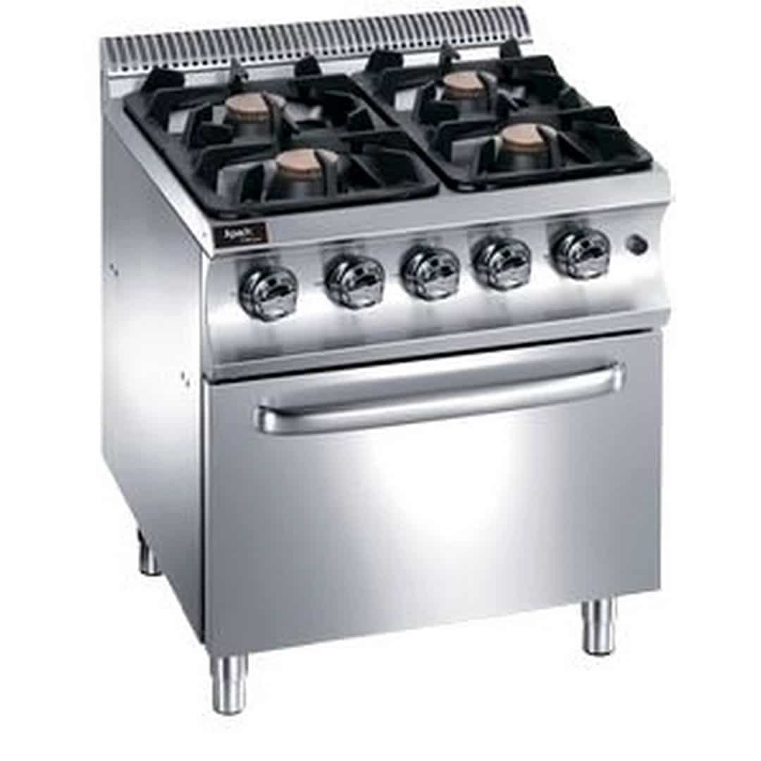 800х900х850 мм, 112 кг, газ 36 кВт, 4 конфорки 375х372 мм, на электрическом духовом шкафу на 6 кВт, шкаф 540x695x290 мм