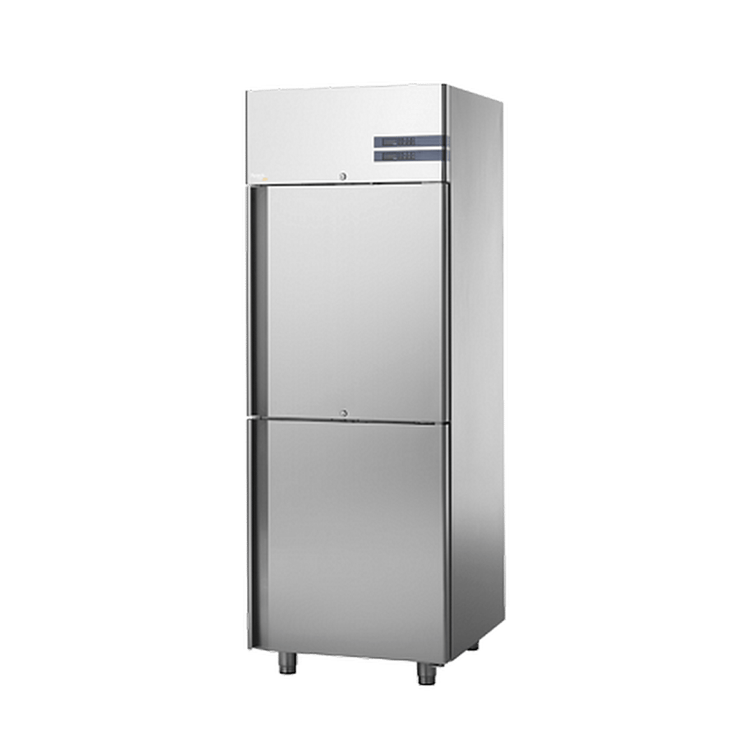740х815х2085 мм, 190 кг, 0,72 кВт, 220 В, 700 литров, от -2 до +8С, от -18 до -22С, энергосбережение, нерж сталь AISI 304, толщина изоляции 75 мм, подсветка, замок, 2 глухие двери, R290, в комплекте: 4 полки GN2/1, 4 пары направляющих, с агрегатом