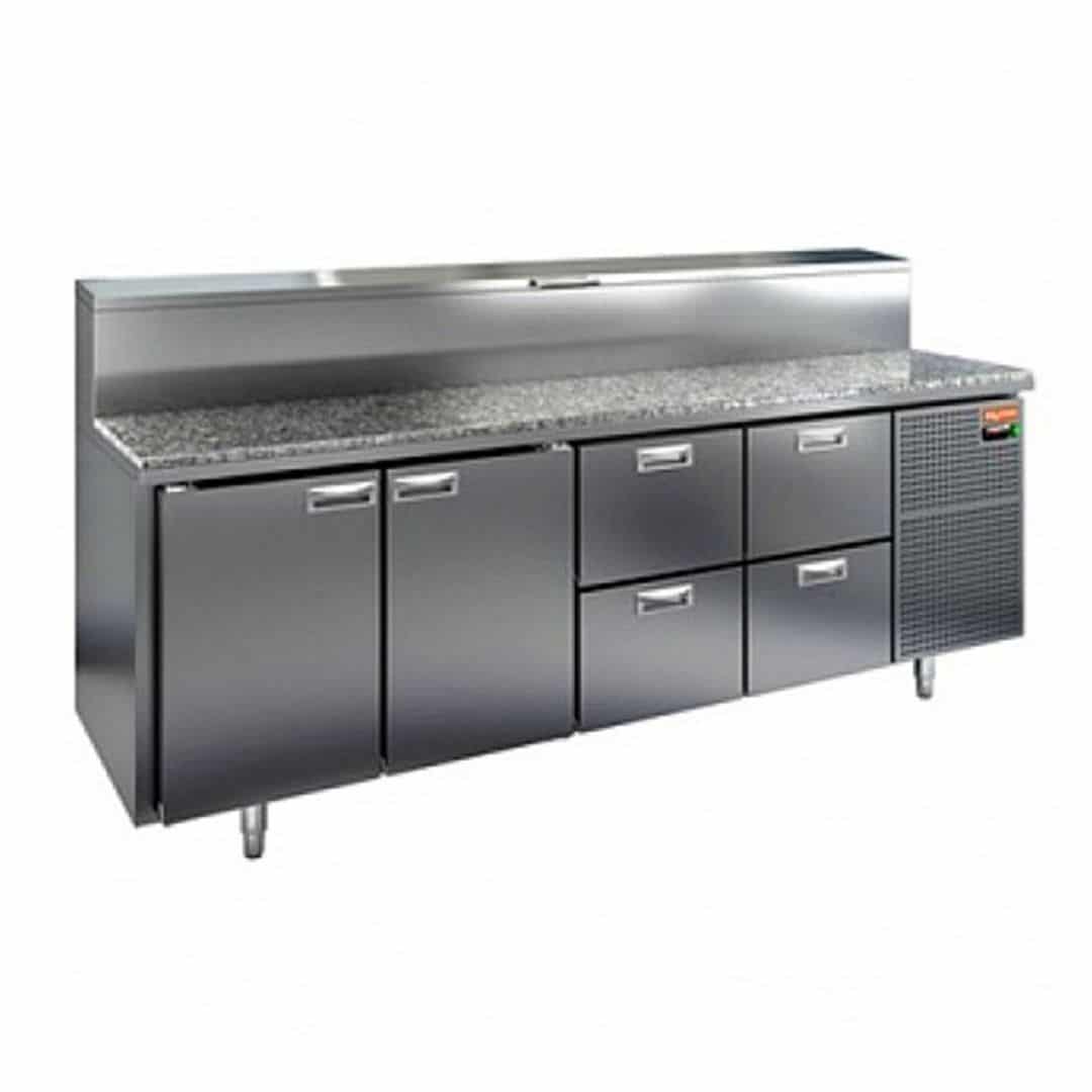 2280х700х850мм, +2/+10, 2 двери+4 выдвиж.ящика, гранитн.столеш., охл.горка с крышк.13хGN1/6 (в компл.не входят), в компл.2направл.+ 2реш.полки GN1/1