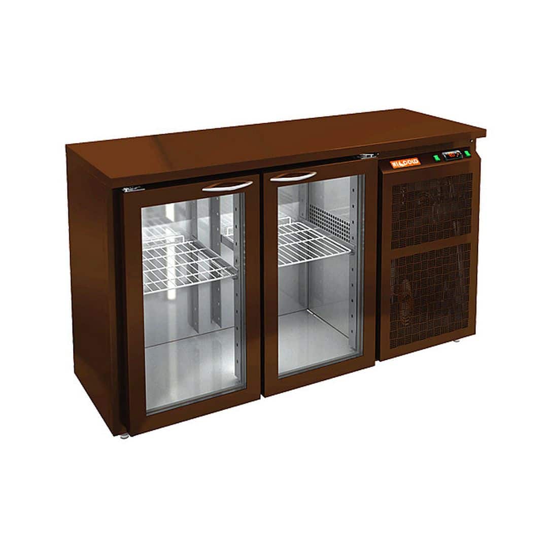 1390х500х830мм, +2/+10, 240л, 2 расп.стекл.двери, размер полок 330х325 мм (2шт в комплекте), подсветка, материал корпуса и столешницы-пластификат, шоколадного цвета