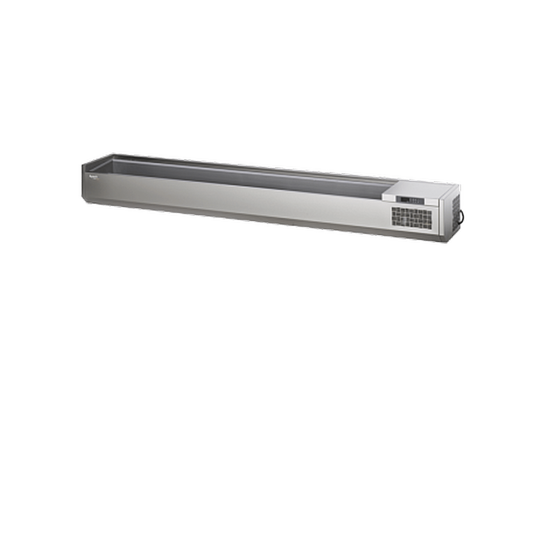 1600х380х275 мм, 45 кг, 0,25 кВт, 220 В, от 0 до +10С, нерж сталь AISI 304, толщина изоляции 30 мм, без стеклянной крышки, R290, гастроемкости GN1/3 (опция), с агрегатом