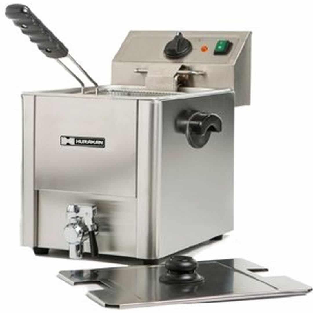 265x415x430, 220 В, 3,25 кВт, 8кг, 1 ванна емкостью 8 л с крышкой, 1 фритюрная корзина, материал корпуса: нержавеющая сталь,температурный режим: 60-190 С°, минимальный залив 3л, максимальный залив 8л масла, кран для слива масла