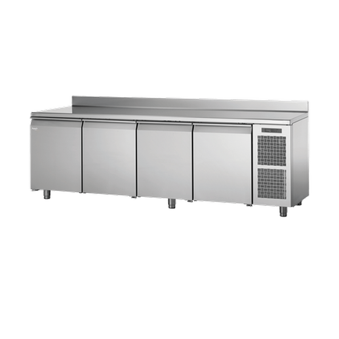 2260х680х590 мм, 170 кг, 0,85 кВт, 220 В, от -15 до -20С, энергетический класс Е, нерж сталь AISI 304, толщина изоляции 60 мм, без столешницы, 4 глухие двери, R290, в комплекте: 4 полки GN1/1, 4 пары направляющих, с агрегатом