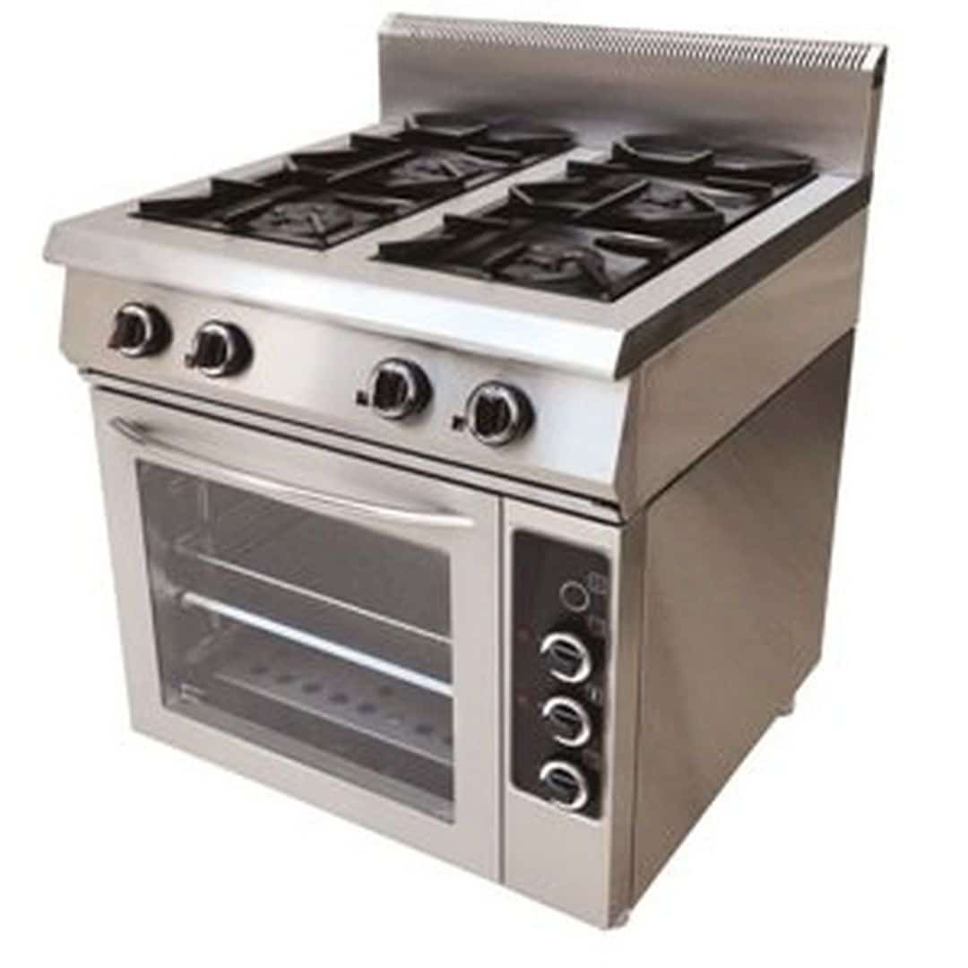 800х800х1050 мм, 4 профессиональные горелки класса Heavy Duty, газовая мощность плиты 33 kW, газ/контроль, полностью из н/стали,большая камера духовки 4хGN 2/1 из н/стали с таймером на 120 минут и подсветкой, дверь со стеклом(закаленным) : сверху ТЭН 1.5 kW, снизу горелка 4.5 kW, управление с помощью термостата, полностью из н/стали г.нетто 800x800x1050, 160кг, г.брутто: 950х950х1200, 185 кг.