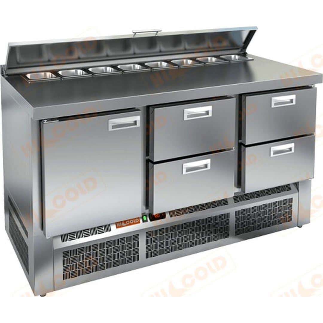 1485х700х850мм, стол для салатов охл.(+2+10), 1 дверь, 4 ящика, ниж.распол.агрегата