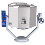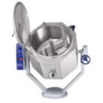 Котел пищеварочный электрический КПЭМ-100-ОМР со сливным краном, 100 л, миксер 0-120 об/мин (плавная регулировка, нижний привод, реверс), +100°С, пар. рубашка, ручное опрокидывание, цельнотянутый