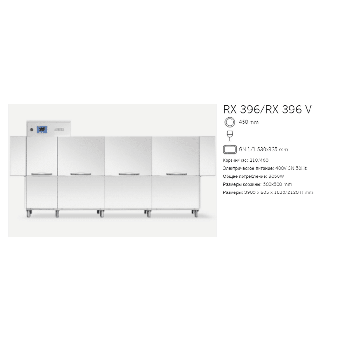 4300x805x1830/2120 H, 380В, 49.04кВт, 210-400 кас/ч, предмойка, двойное ополаскивание, комплект дозаторов (DDE), сушка 9 кВт (DR69), HR10 — компакт. теплорекуператор — консоль: для подключения к холодной воде (потреб. энергии, t и влажн. воздуха в помещен. ниже, чем при доп. мощности),. SX — движение СЛЕВА-НАПРАВО. Одно деление (машина поделена на 2 части)