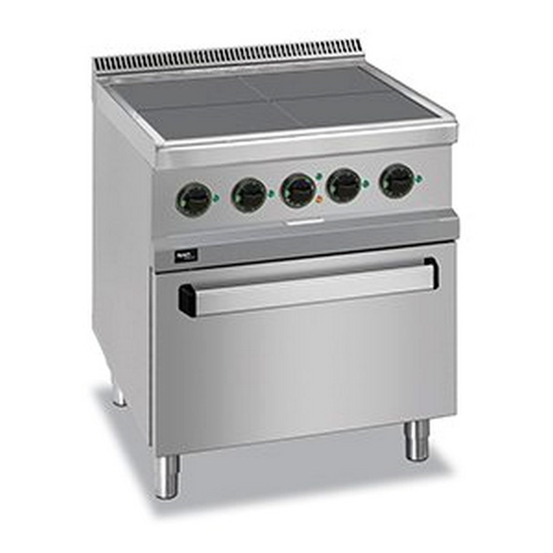 700*700*850, 380В, 12,6кВт, 4х2,5кВт, 4 низкие квадр.конфорки, на конвекц.жар.шкафу 2,6 кВт