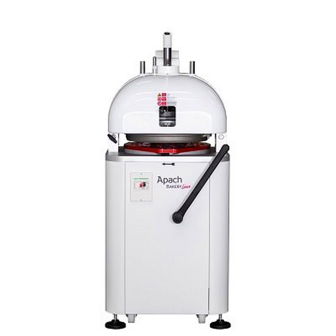 610x680x1500мм, высота с поднятым рычагом — 2050мм, вместимость 4 кг, 36 кусков теста по 34-110г, 4300 шт/ч, дежи и головки из алюминиевого сплава, с твердым анодированием, ножи и решетки из нержавеющей стали 304, внутренняя поверхность из пищевого полиэтилена