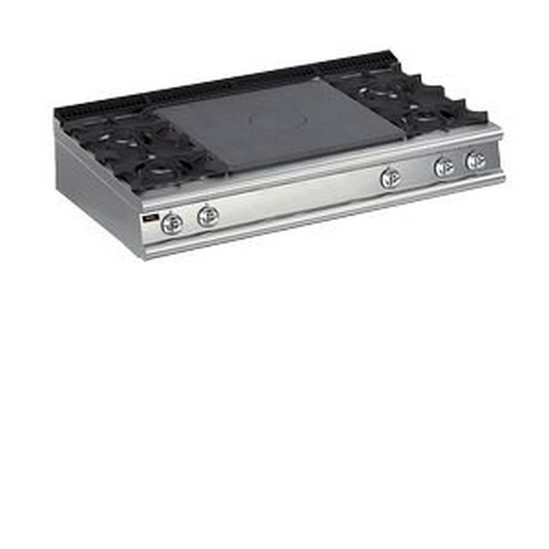 1600х700х250 мм, 161 кг, газ 33 кВт, 1 зона концентрического нагрева по центру + 2 горелки слева + 2 горелки справа, настольная