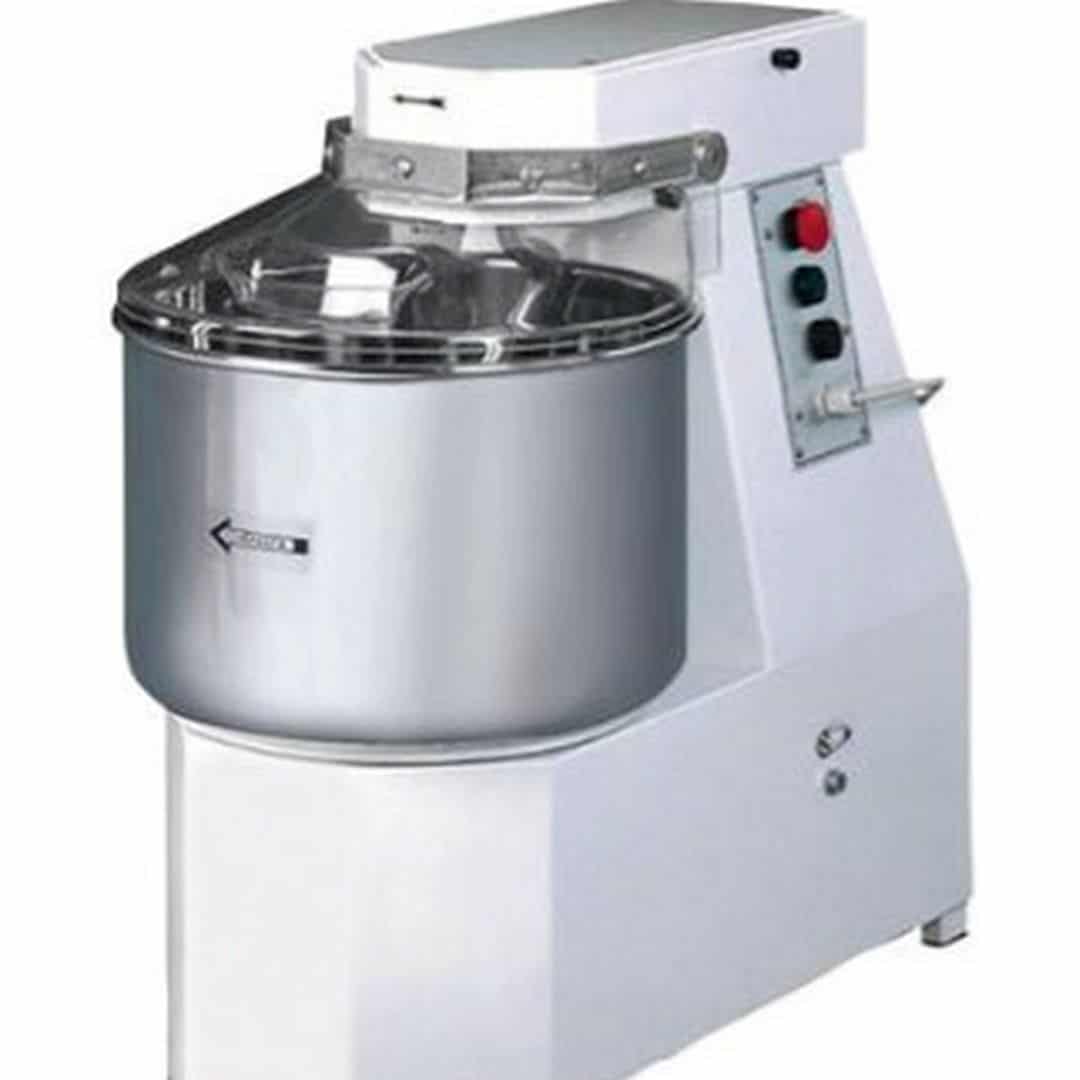 390x690x670, 380В, 0,75кВт, загрузка — 20кг, объем дежи — 25 л, 90 кг/час, спиральный, 1 скорость