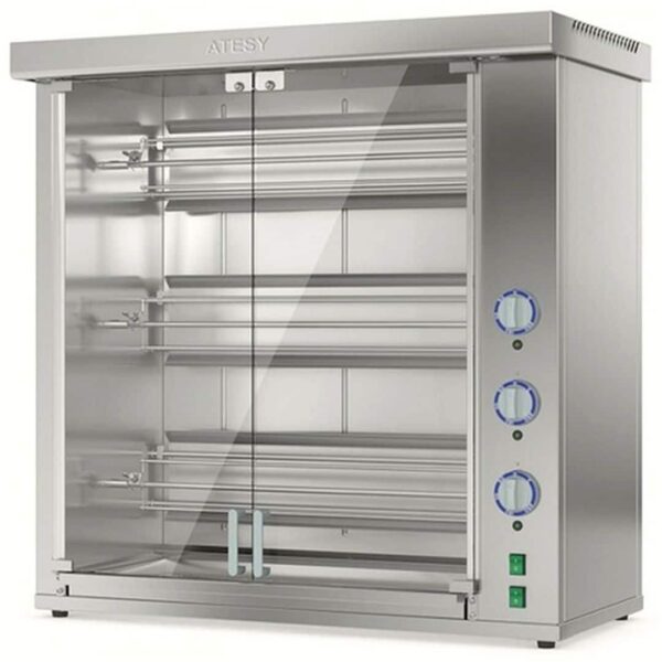 860х580х655 мм, 8,0 кВт, 380 В, +50…+250°С, встроенный таймер: 15-120 мин, 6 садков, вместимость: 18 кур