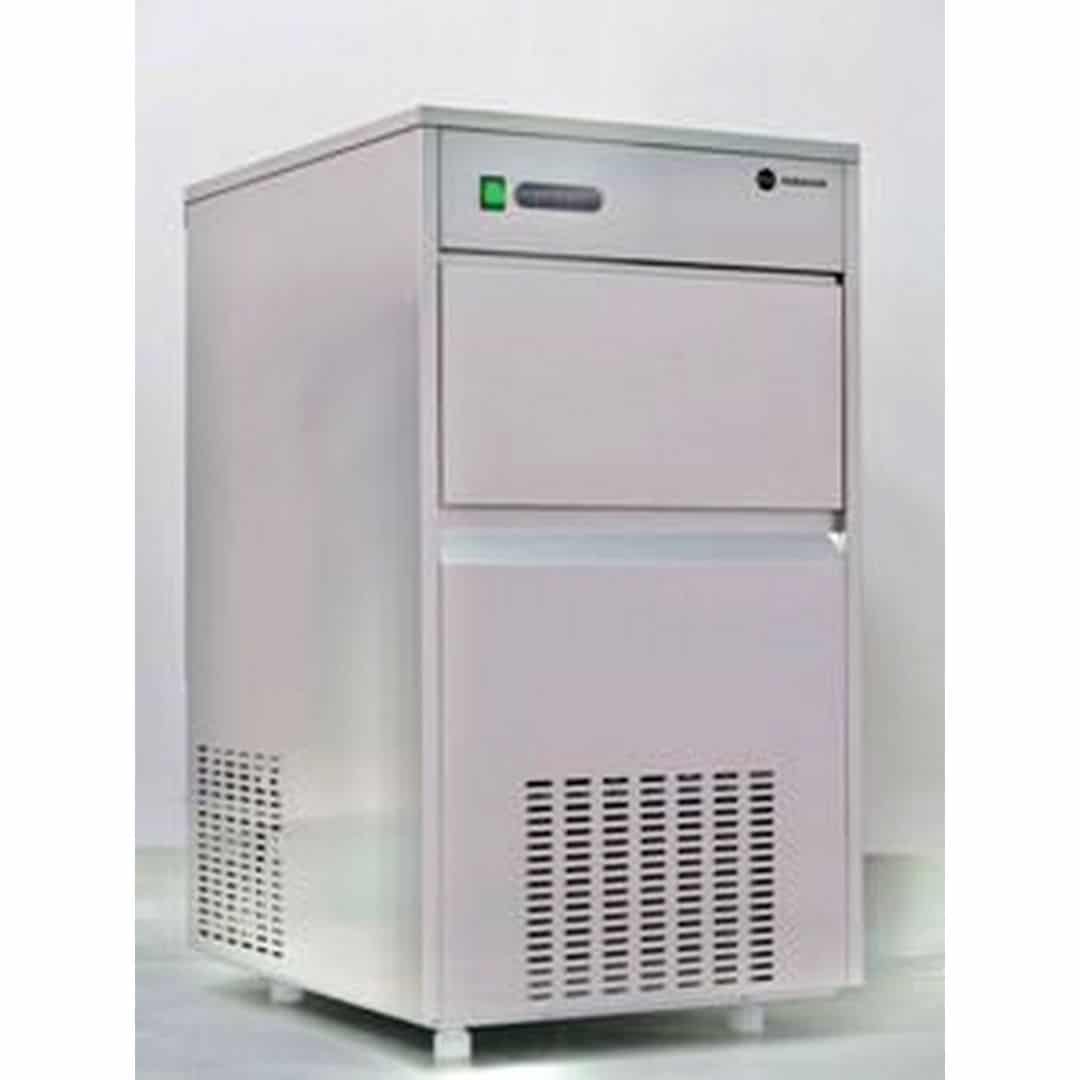 500x612x893мм, 0,45кВт, 220В, 49кг, производительность 80 кг/сутки, бункер 25кг, воздушное охлаждение, с подключением к воде, пальчиковый лёд