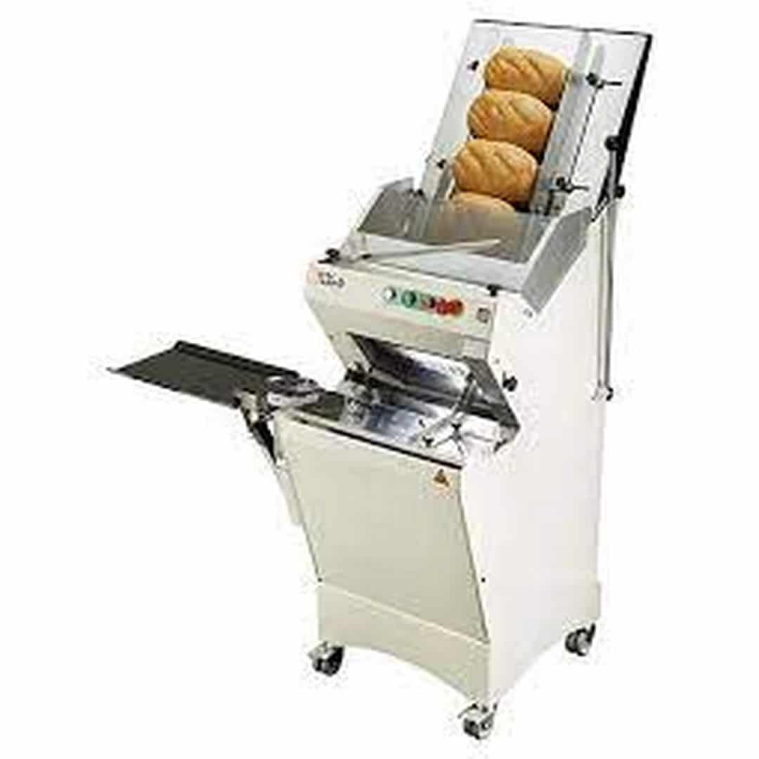 1083*907*1834 мм, 0,49 кВт, 380В, напольная модель с непрерывной нарезкой, нож стальной 10*0,5мм, максимальный размер изделия для нарезки 440*160 мм, цвет — белый. Для нарезки ломтиками 11 мм. Производительность до 500 нарезок/час. Боковой рычаг позволяет выполнить нарезку последней буханки в полной безопасности. Съемный бак для сбора крошек емкостью 18л.