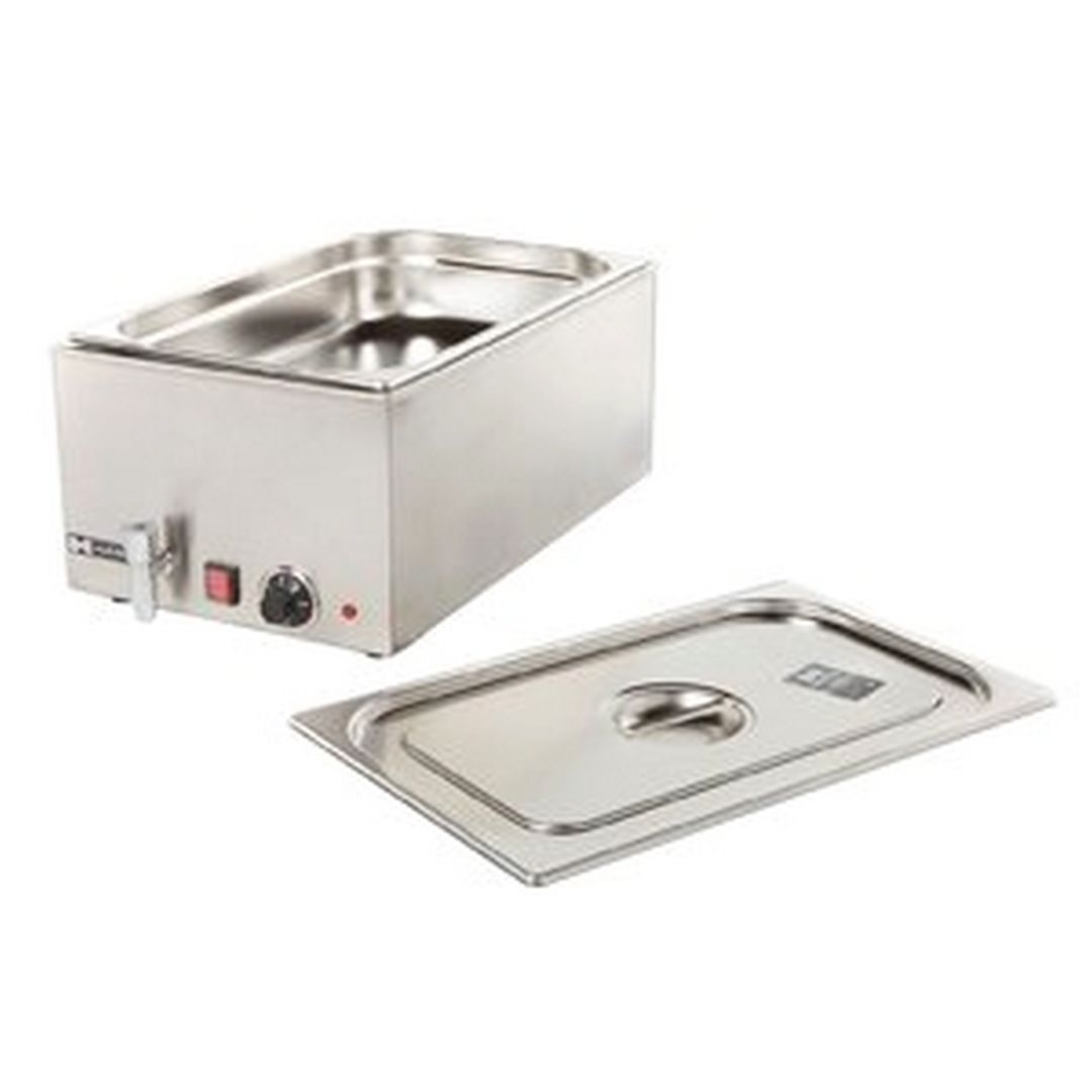 590x350x280, 220В, 1,2 кВт, вес нетто 9,7 кг, материал корпуса:нержавеющая сталь, в комплектацию входит гастроемкость GN1/1-150 с крышкой, возможно использование гастроемкостей GN1/3-150 (3 шт.) и GN1/2-150 (2 шт.), имеется кран для слива воды