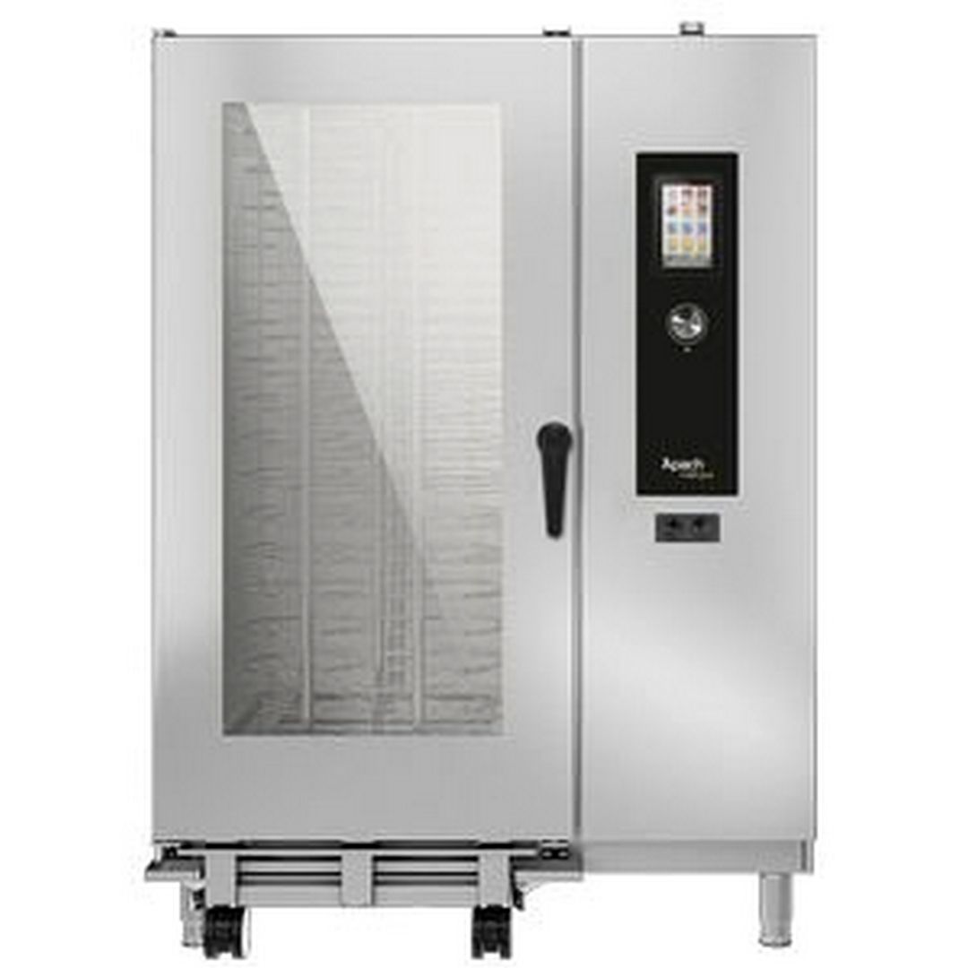 960*825*1810 мм, 1,8 кВт, газ 48 кВт, 220В, бойлер, 20 уровней GN1/1, расстояние между направляющими -63 мм. В комплекте: душ для мойки с соединительными элементами. Версия с сенсорным экраном-Т (приготовление "одним касанием")