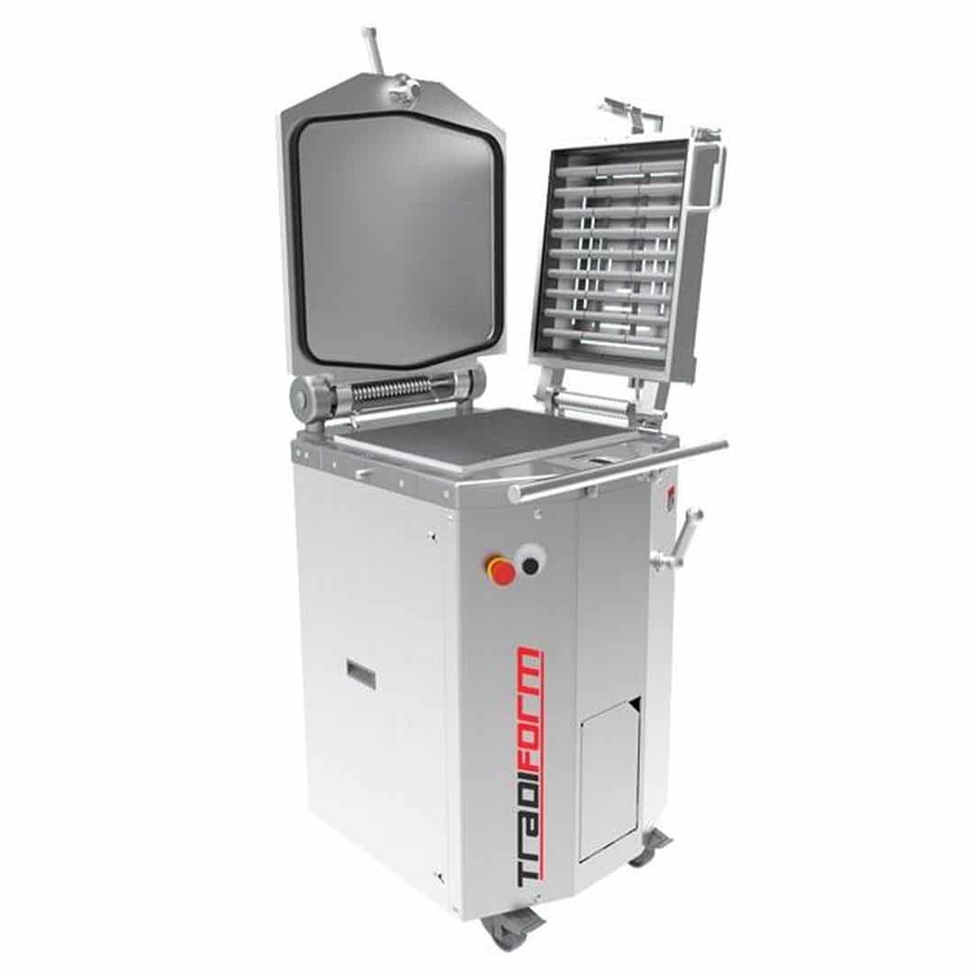 1000*1649мм, 1,5кВт, 380В, размеры кювет: 460х387х125мм, вместимость кюветы 19кг. Деление в кювете до 900ед/ч. Деление и формовка до 3000 ед/ч. Вес тестовых заготовок от 150 до 950г. Отделка из нержавеющей стали. Автоматический подъем ножей для удобной очистки. Крышка для прессовки. Система антивыброса предотвращает распыление муки. Регулировка давления предотвращает выделение газов, содержащихся в тесте. Поставляется вместе с рамкой для решетки*