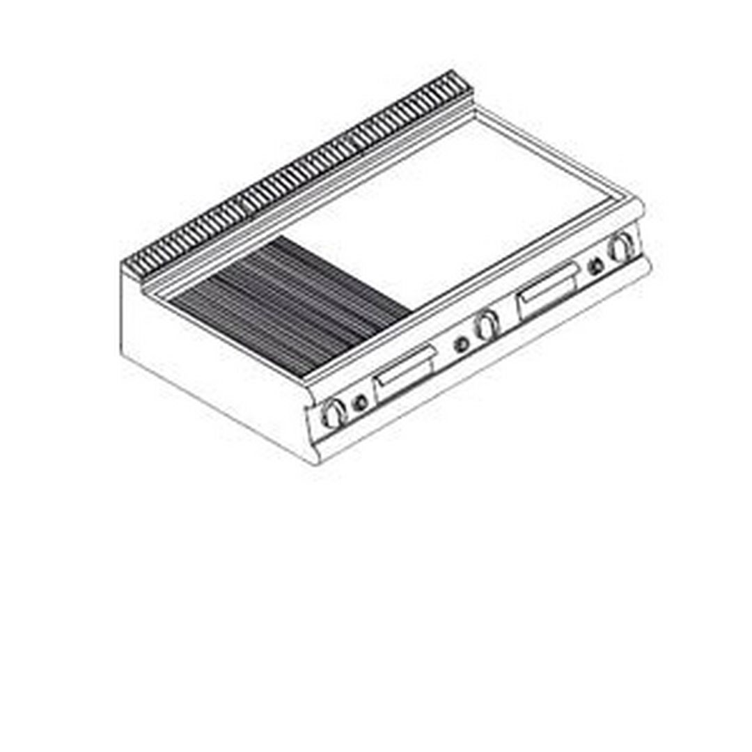 1200х700х250 мм, 94 кг, газ 19,5 кВт, 1/3 рифленая хром, 2/3 гладкая хром, настольная, термостат