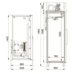 1402*1960*854 мм., +1…+15° С, Внутренний объем 1400л, 8 полок, вертикальная внутренняя подсветка, канапе с подсветкои?, распашные двери
