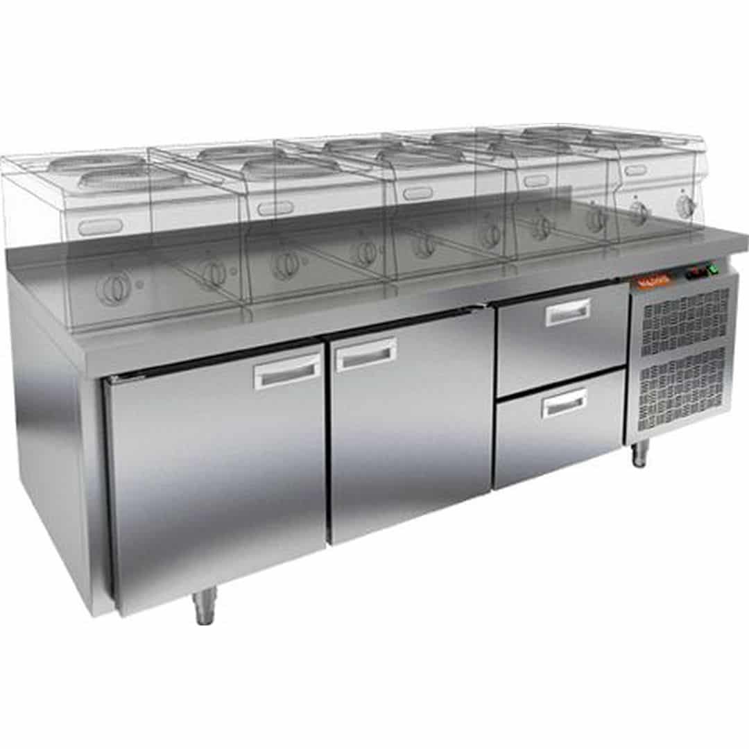 1835х600х675, 220D, 0,46кВт, нерж/сталь 430; t=-2/+10°, борт=50мм, 2 двери, 2 ящика, 320л, агрегат снизу