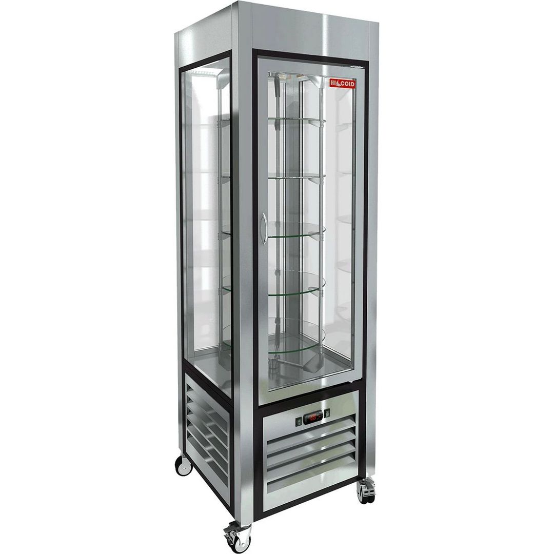 600х600х1950 мм.,VRC 350 R FR витрина охл. кондитерская., вращ. полки, на колёсах, нерж., рамка цвет., HICOLD RUS, +2+10С