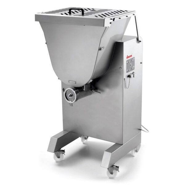 370×220х440 мм, 0,75 кВт, 380В, 200 кг/час, реверс, система ENTERPRISE (нож, решётка), диаметр отверстий в решётке 6 мм, стандарнтый нож, мясорубочная часть и шнек — нержавеющая сталь, нож и решётка — нержавеющая сталь, лоток и горловина — нержавеющая сталь