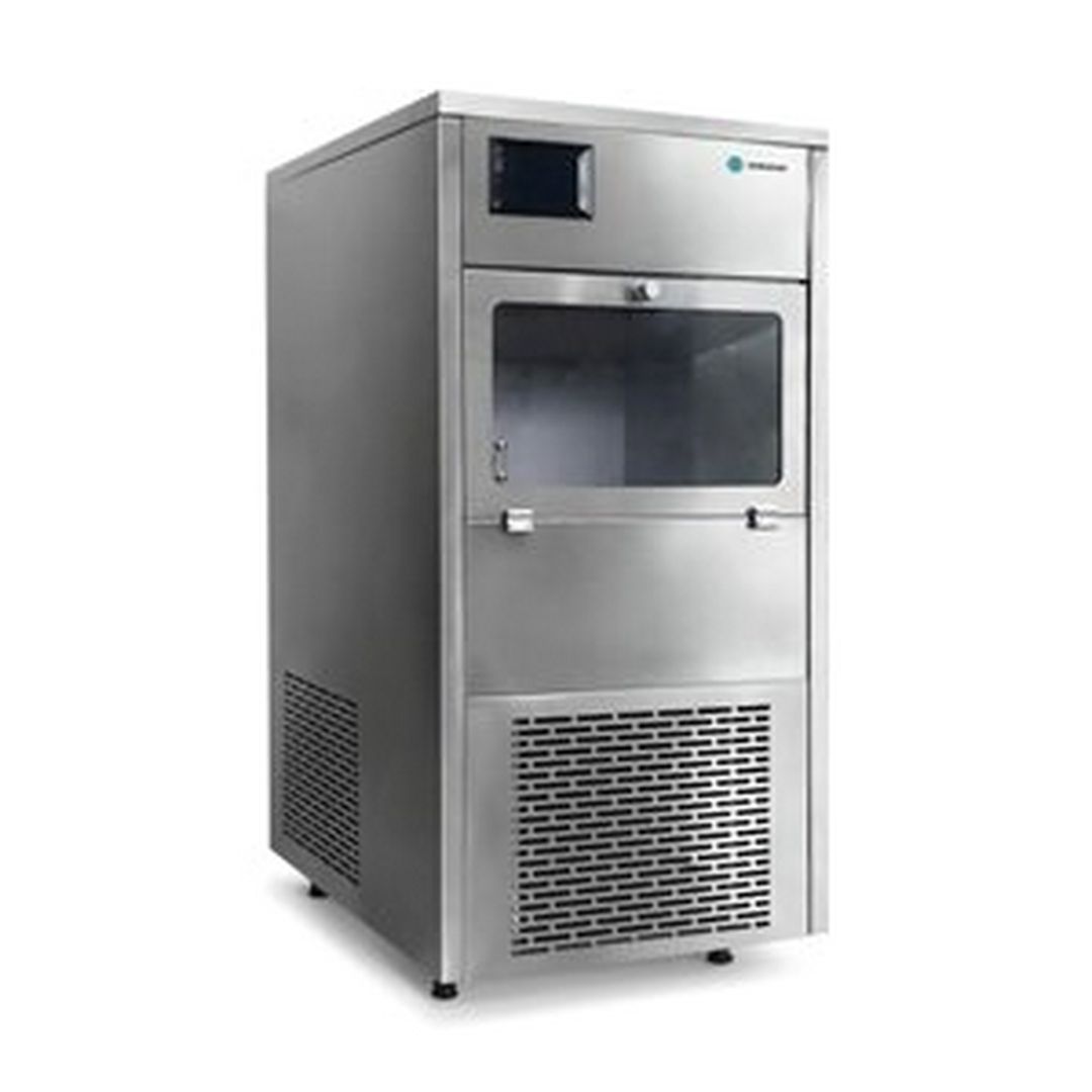 670x650x1140, 220 В, 0,55кВт, производительность 100 кг/сутки, бункер 30кг, воздушное охлаждение, с подключением к воде, чешуйчатый лёд, материал корпуса нержавеющая сталь 304, лопата для льда в комплекте, регулир. ножки, компрессор Embraco