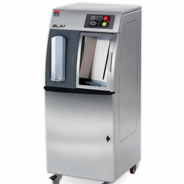 663*760*1243 мм, 1,5 кВт, 380В, напольная полуавтоматическая модель, система микронизированной смазки ножей «M» для нарезки хлеба с высоким содержанием ржи или липкого мякиша. Нож тефлоновый 13*0,5мм, максимальный размер изделия для нарезки 440*310*160 мм, высота толкателя 80 мм, цвет — белый. Для нарезки ломтиками 11 мм. Производительность до 200 нарезок/час. Рычаг плавной тяги обеспечивает более качественное управление усилием. Съемный бак для сбора крошек емкостью 18 л. Устройство для расфасовки в пакеты облегчает упаковку хлеба.
