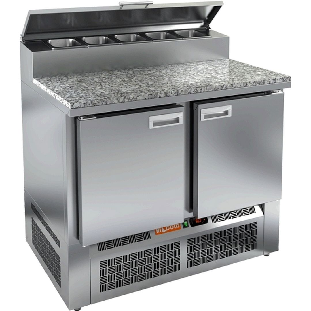 Стол охлаждаемый высокотемпературный тип HT модель PZE2-11/GN (1/6H) для пиццы, 1000х700х850 (до столешницы), 990 (общая) мм, +2…+10С, 350л, 150Вт, 220В, размер охл.горки 859х141 мм, высота 1/6H — 100мм мах, глубина рабочей части столешницы 486 мм выполнена из камня, 2 распашные двери