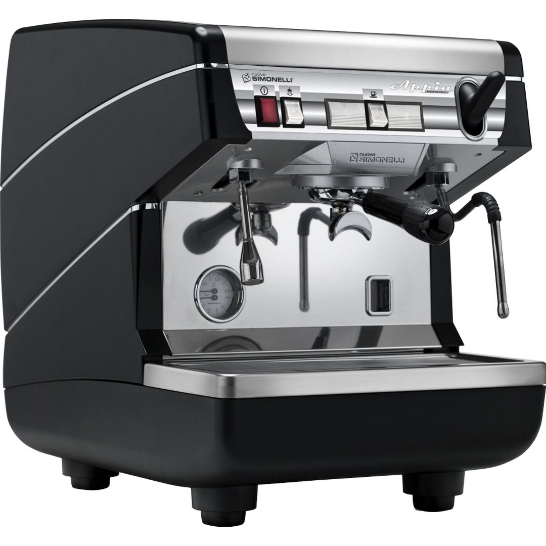 Кофемашина т.м. Nuova Simonelli серии Appia Life 1Gr, модель Appia Life 1Gr S 220V black (полуавт.1 выс.гр. черная), полуавтоматическая, 1 высокая группа, 404х545х498 мм, 1900Вт, 220В, 32,5кг вес, объем бойлера 5л с изоляцией, задняя панель — нержавеющая сталь. боковая панель: основание — пластик ABS черного цвета. Предусматривает ручную дозацию кофе, кипятка и пара (остановка подачи напитка, кипятка и пара осуществляется вручную). Кофемашина снабжена системой предварительного заваривания SIS (гарантия идеальной экстракции при неправильной трамбовке кофе), 1 паровым краном из нержавеющей стали с системой PUSH&PULL, краном подачи горячей воды. Медный бойлер объемом 5 л оснащён предохранительным клапаном, антивакуумным клапаном, реле давления, системой автоматического заполнения. Гидравлическая система включает в себя: встроенную волюметрическую помпу, манометр давления, индикатор уровня воды. Машина имеет обновленный корпус: основание и боковые пластиковые панели — черного цвета, задняя панель — со стальной вставкой, рабочая поверхность из нержавеющей стали, зеркальце обратного вида (позволяет видеть экстракцию и состояние сеточки, прокладки группы). В комплекте с кофемашиной поставляется коробка аксессуаров: загрузочный шланг 3/8 — 1шт., шланг для слива диаметром 25мм и длиной 150мм — 1шт., рожок подачи — 2шт., корзинка двойная — 1шт., корзинка одинарная — 1шт., «слепой фильтр» — 1шт., пружинки для корзин -1шт., носик двойной — 1шт., носик одинарный — 1шт., темпер пластиковый — 1шт., подставки под группы для чашек эспрессо — 1шт.