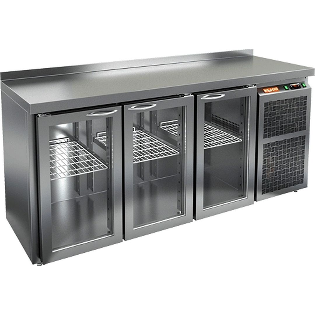 1950х700х850мм, 0,41кВт, 220В, +2…+10С, 556л, 3 расп.стекл.двери, подсветка, в компл.3 направл.+3реш.полки, без борта