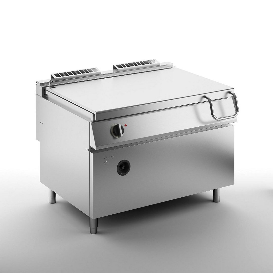 1200х900х900 мм, 205 кг, газ 24 кВт, 220 В, 120 литров, автоматическое опрокидывание, 0,3 кВт, днище — мягкая сталь