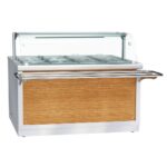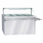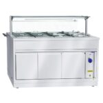 Электрический мармит кухонный 2-х блюд ЭМК-70Х-01, 1500 мм, паровой, +30…+80 С, с гастроемкостями, 1 стеклянная полка, LED-подсветка, съемный нерж. фасад, направляющие в комплекте