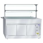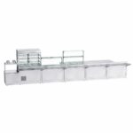 Прилавок для горячих напитков ПГН-70Х-05, 1500 мм, 2 розетки, 2 стеклянные полки, LED-подсветка, съемный нерж. фасад, направляющие в комплекте
