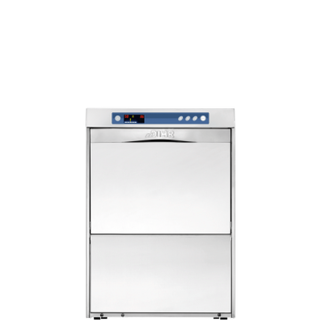 595x610x845, 380В, 5,15кВт, кассета 500х500мм, подключ. к гор.воде, электронное управление 4 цикла 60, 40, 30, 20 кас/час, двойная дверь и двойные стенки, ванна с наклоном для полного слива, Thermostop — ополаскивание начинается только при достижении t85 градусов, обтекаемая форма крышки от падения капель, легкие ополаскивающие рукава — эффективны при низком напоре воды, моющие рукава из нерж. стали
