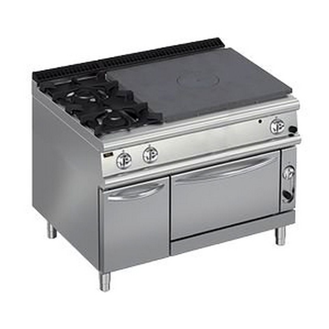 1200х900х870 мм, 205 кг, газ 33 кВт, 1 зона концентрического нагрева + 2 горелки слева, на газовом духовом шкафу на 8,5 кВт