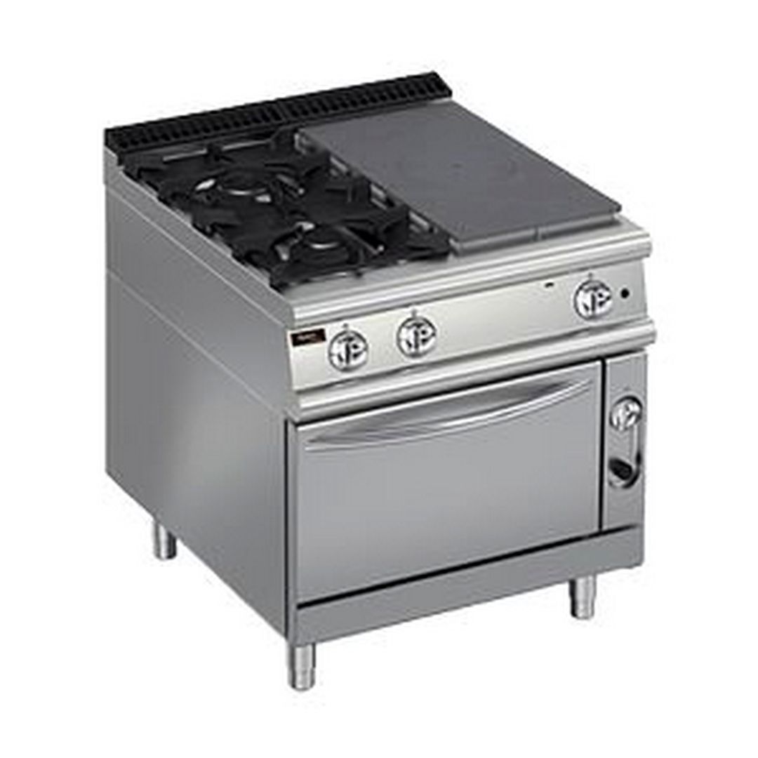 800х900х870 мм, 184 кг, газ 26 кВт, 1 зона концентрического нагрева + 2 горелки слева, на газовом духовом шкафу на 8,5 кВт