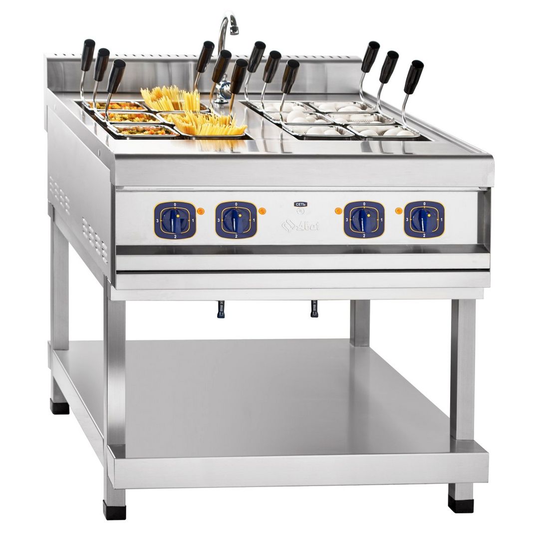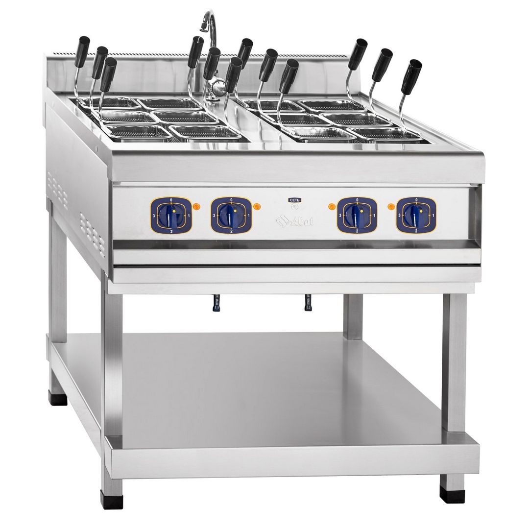 800х900х950мм, Электроварка кухонная двойная ЭВК-90/2П, ванна 304х508х270 мм, 12хGN-1/6 (перфорированные, без крышки), 900 серия, 800х900х950 мм, 15 кВт, 400В, подставка с полкой, вся нерж. (под заказ)