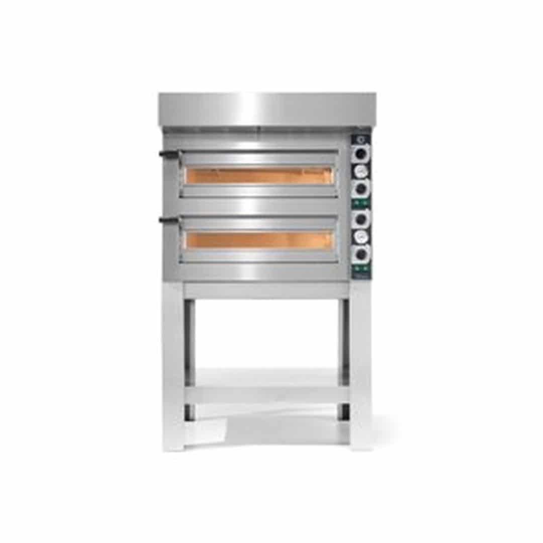 700х560х690мм, 4,2кВт, 380В, размер камеры: 420х420х140мм, вместимость 4+4 пиццы по 20см или 1+1 по 40см, двухкамерная моноблочная печь