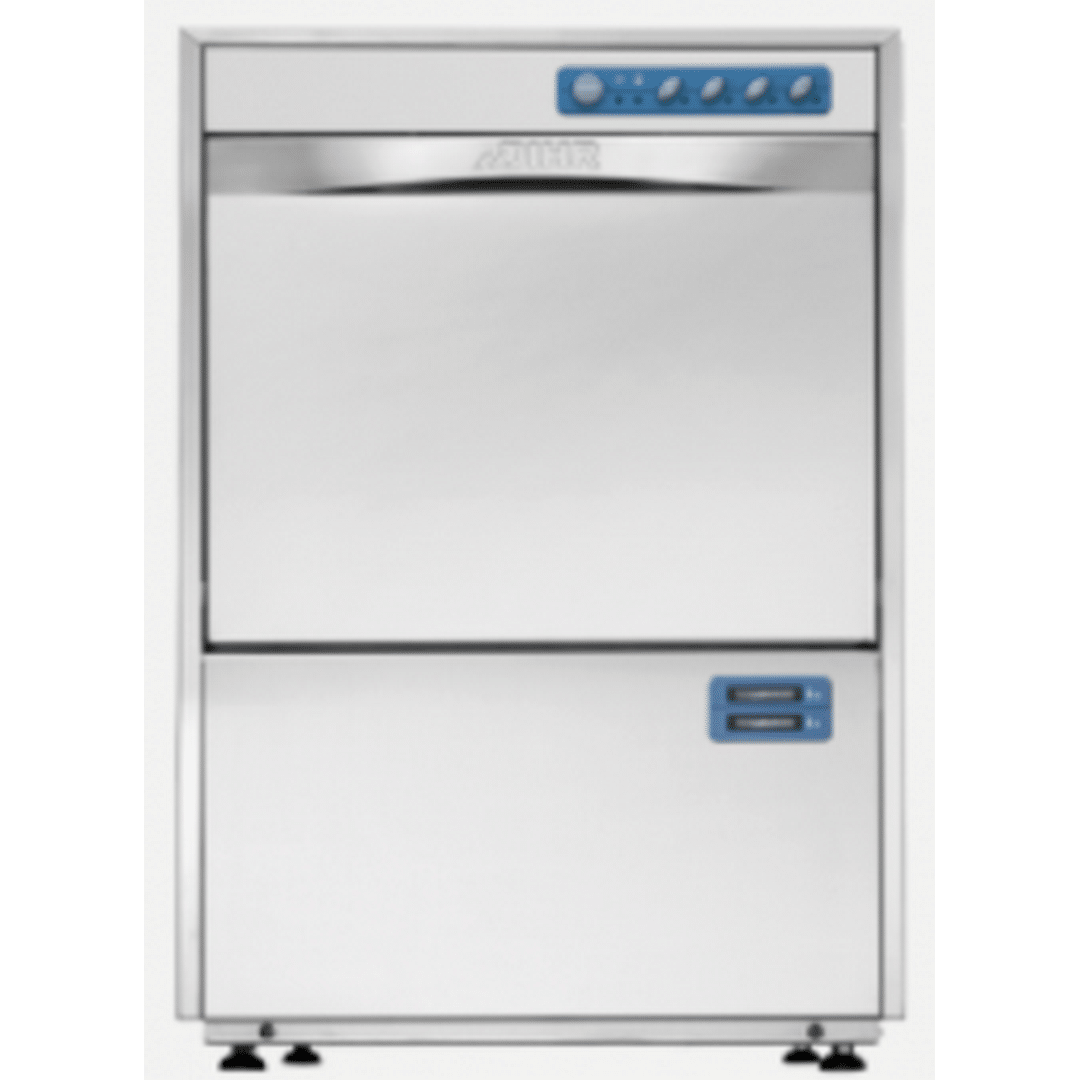 600x610x850, 380В, 5.2 кВт, D- водоумягчитель, корпус с двойными стенками из AISI 304, 2 программы: 30/20 корз./час, кассета 500×500, для стаканов и бокалов до 325 мм (h), тарелок диаметром до 340 мм, гастроёмкостей GN 1/1 20 мм, подключение к горячей воде