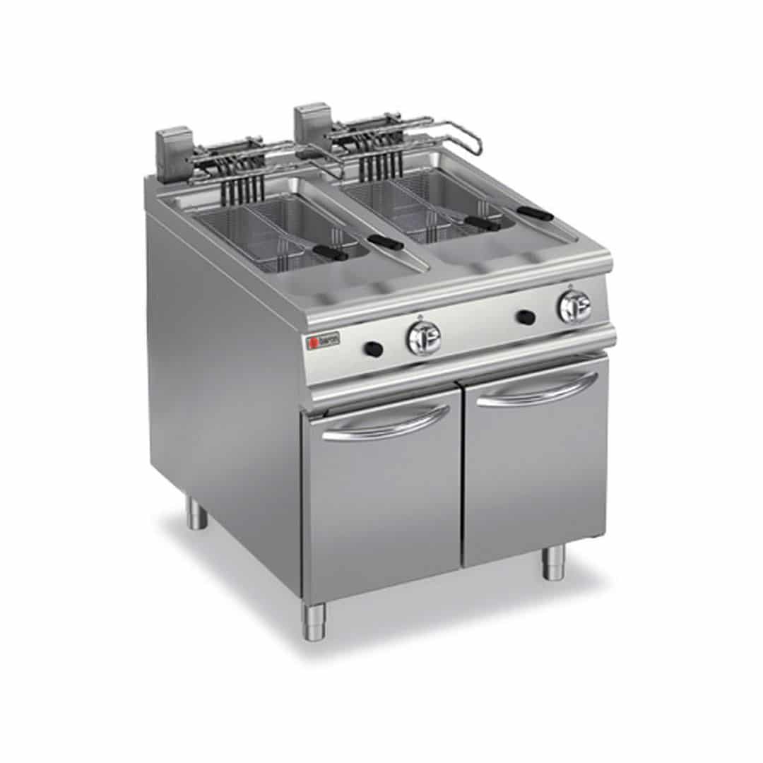 800х900х900 мм, 120 кг, газ 28 кВт, 2 ванны по 15 литров, на закрытой подставке, в комплекте: 1 корзина, 1 крышка, 1 решетка днища для каждой ванны