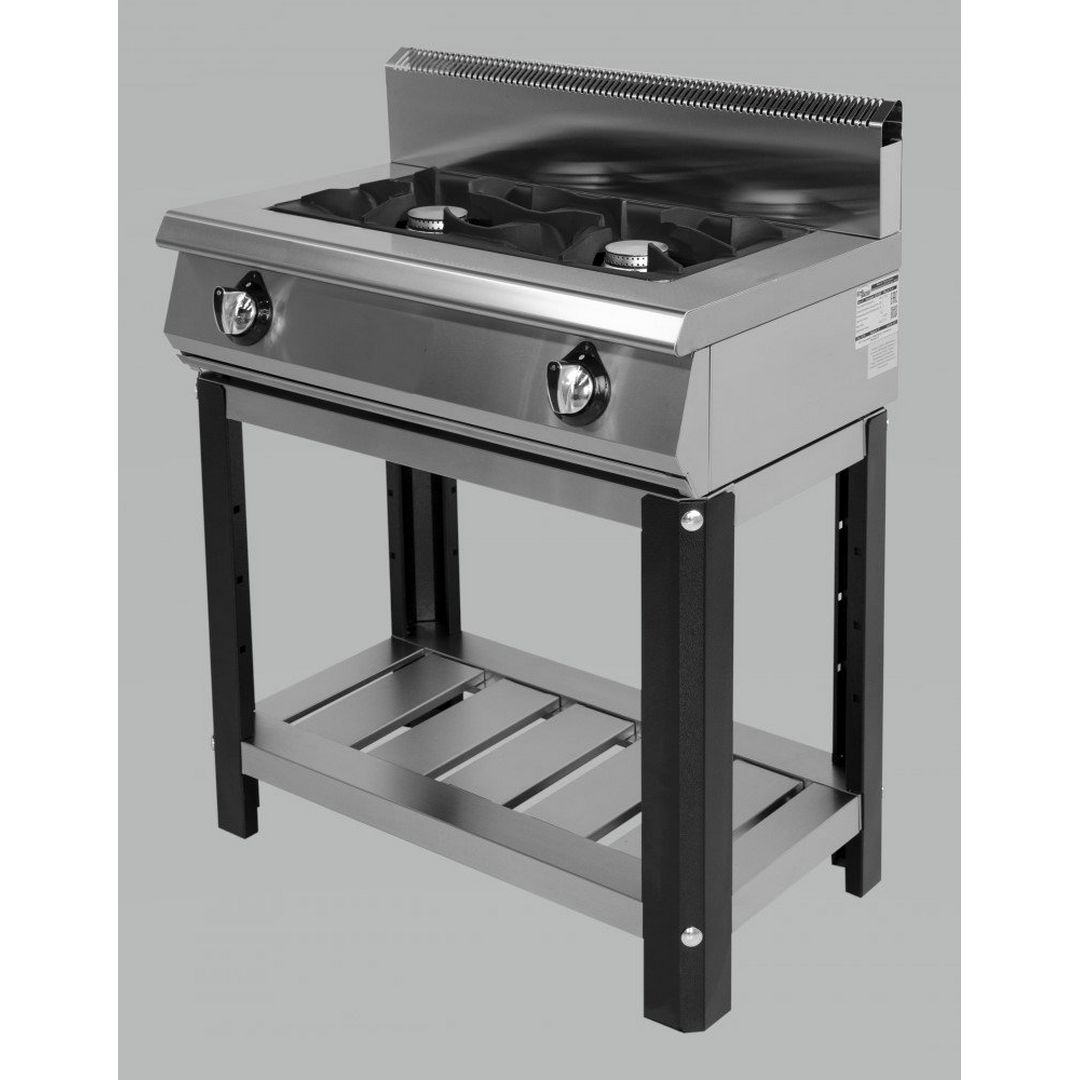 2 профессиональные чугунные горелки, газовая мощность 13 kW, газ контроль, полностью из н/стали, 1 нейтральная полка из н/стали г.нетто 800х500х1050, 53кг, г.брутто: 950х650х630, 78кг.