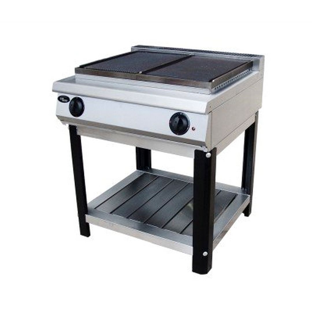 2 специальные горелки с запальной системой розжига, газовая мощность 23 kW, чугунная рабочая поверхность, 1/2 рифленая, 1/2 гладкая, электророзжиг, газ/контроль, г.нетто 800x800x1050, 124кг, г.брутто:950х950х600, 149кг.