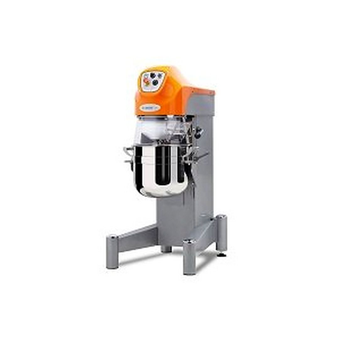 685х926х1477мм, 1,5кВт, 380В, 40л, 210кг, 3 скорости, электромеханическая панель, ручное опускание дежи, пластиковое защитное ограждение, в комплекте: дежа 40л, венчик, лопатка, крюк
