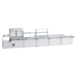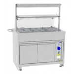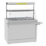Электрический мармит кухонный 2-х блюд ЭМК-70Х с подогреваемой полкой предназначен для кратковременного хранения в горячем состоянии вторых блюд в функциональных емкостях и раздачи их потребителю. ВНИМАНИЕ: Линия раздачи "HOT-LINE" изготавливается по умолчанию с панелями из нержавеющей стали! Дополнительно можно приобрести комплект торцевой (правый и левый) и комплект колес.