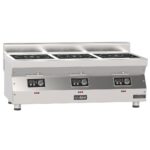3-х конфорочная индукционная плита КИП-35Н-3,5 предназначена для приготовления первых, вторых и третьих блюд в специальной наплитной посуде. Используемая посуда должна обладать магнитными свойствами (к ней должен притягиваться магнит) и иметь плоское дно. Может использоваться посуда из нержавеющей стали или алюминия с ферромагнитным дном, чугунная посуда.
