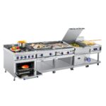 Газовая плита шестигорелочная с духовкой (газовой) ПГК-69ЖШ. Предназначена для приготовления первых, вторых и третьих блюд в наплитной посуде, а также для жарки полуфабрикатов из мяса, рыбы, овощей и выпечке мелкоштучных кулинарных изделий.