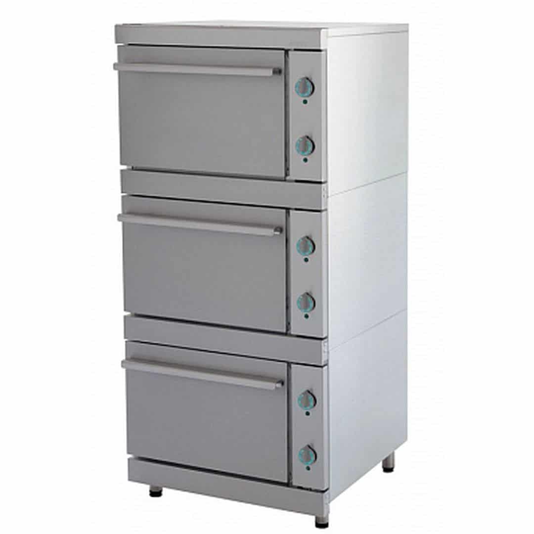 Жарочный шкаф ATESY ЭШВ-3 предназначен для приготовления различных мясных, рыбных и овощных блюд на предприятиях общественного питания и торговли. Модель оснащена электромеханической панелью управления и подставкой с ножками, регулирующимися по высоте. Дверца, ручка и панель управления выполнены из пищевой нержавеющей стали AISI 430, противни и внутренняя поверхность – из углеродистой стали, подставка – из оцинкованной стали.