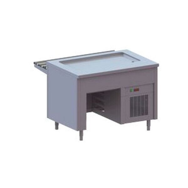 1120x1371x1341 , передвижная.,Прилавок холодильный ПВВ(Н)-70ПМ-НШ (откр., полка с подсветкой,с г/емкост.,1120 мм) /вся нерж , 380/220В, 0,64 кВт. +1…+10 R22